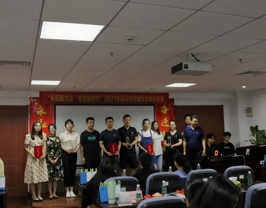 为庆祝中国共产党成立100周年,扎实开展党史宣传教育,以实际行动学党史、悟思想、办实事、开新局,根据浙江省委“九学九新”内容部署与舟山市委关于开展党史学习教育的工作安排,要求教育党员干部重温党的光辉历史、感悟党的初心使命、领会党的创新理论、体认党的精神谱系、传承党的红色基因,2021年8月6日下午,由中国(舟山)海洋科学城建设管理中心主办,中船(浙江)海洋科技有限公司承办的“永远跟党走 · 奋进新时代”党史知识竞赛在中浪海景大厦举行。