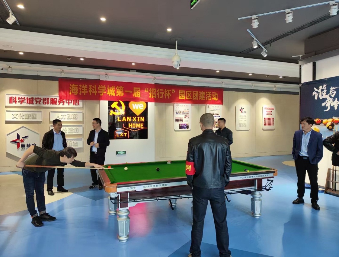 2021中国舟山海洋科学城第一届“招行杯”园区团建活动,经过一周时间紧张激烈的角逐,已圆满落幕。本次比赛项目分为乒乓球、桌球、桌上冰壶三个大项,由园区内各企事业单位派出选手报名参加,我院也有多名员工报名参与了各个项目。其中,周文雄进入桌球四强,刘基、郑碧晓分别进入乒乓球男女组的八强,还有多名同志也都在各自的比赛中奋力拼搏,发挥出了自己的水平,展示了欣海人不骄不躁、勇于拼搏的风采。